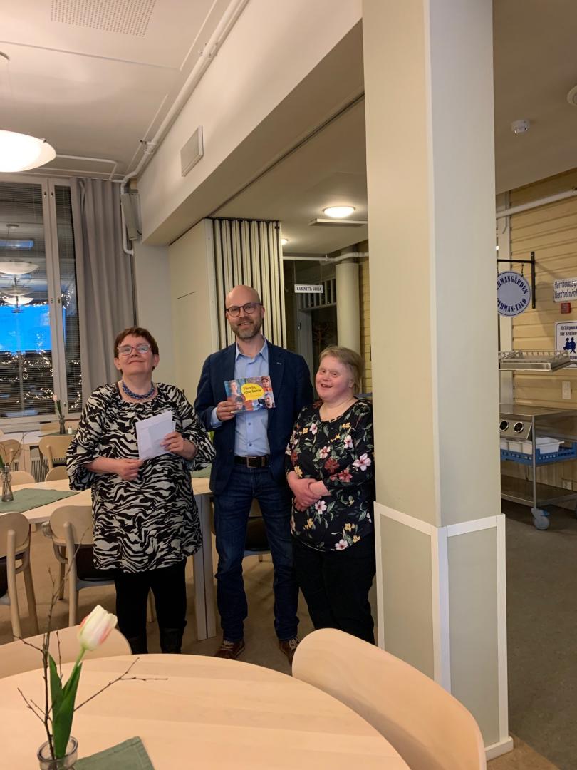 Johanna Holmäng (SFP) stöder vår kampanj om att inte skära ner i funktionshinderservicen. Med på bild med Johanna är även Heidi, Jonas och Pia från Steg för Steg i Jakobstadsnejden.Läs mera »