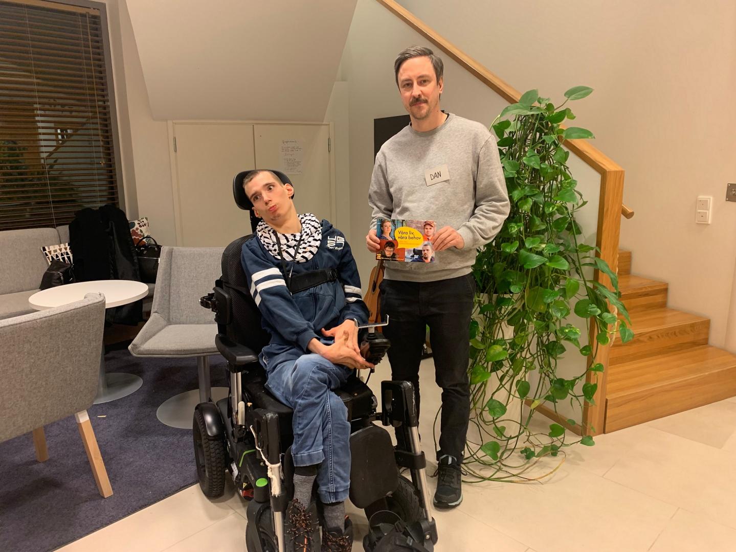 Rainer Bystedt (SFP) stöder vår kampanj om att inte skära ner i funktionshinderservicen. Med på bilden är även Tobias Ståhlberg från Steg för StegLäs mera »