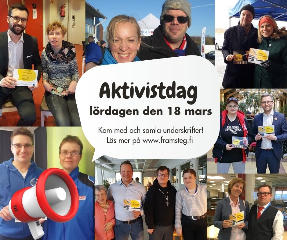 Den 18 mars ordnar vi en aktivistdag då vi samlar foton på olika orter i Finland.